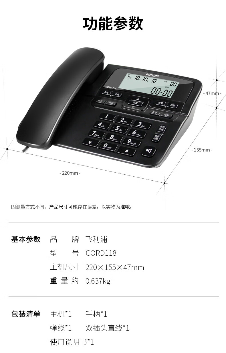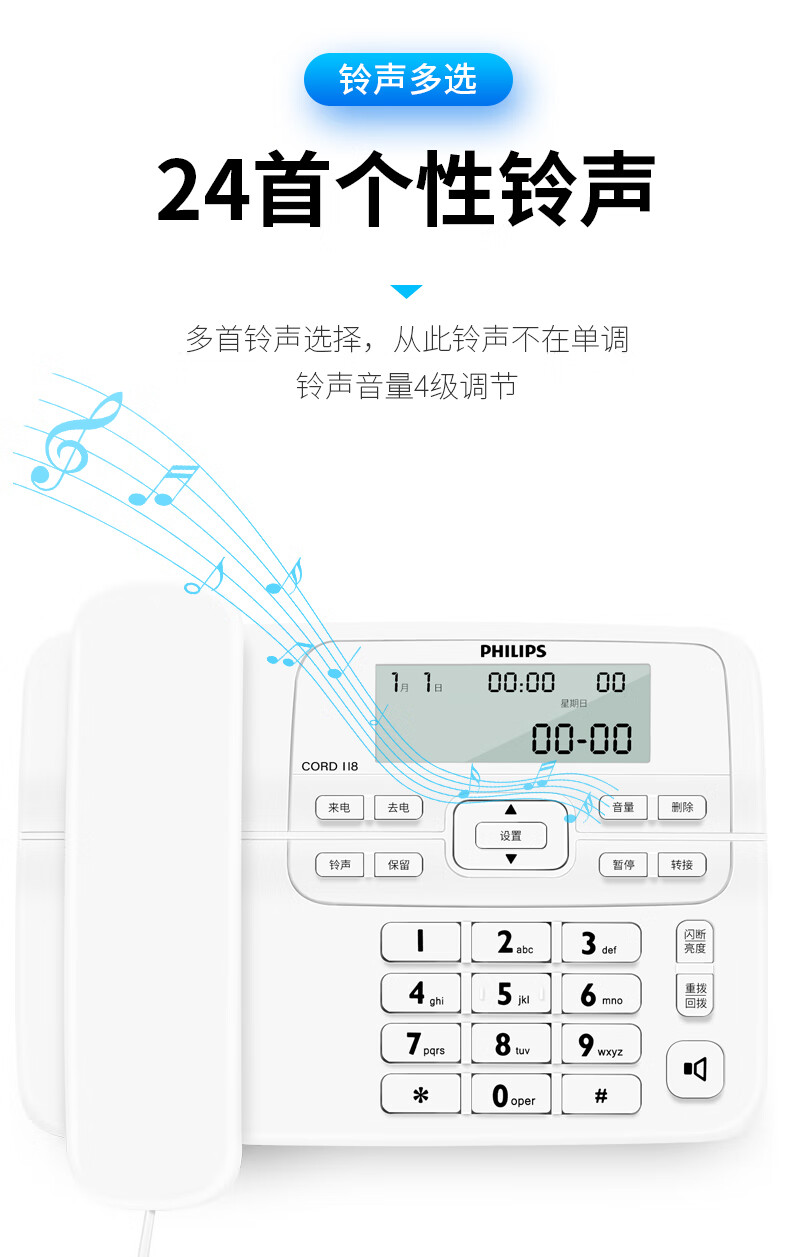 飞利浦 CORD118 升级加强版本 电话机