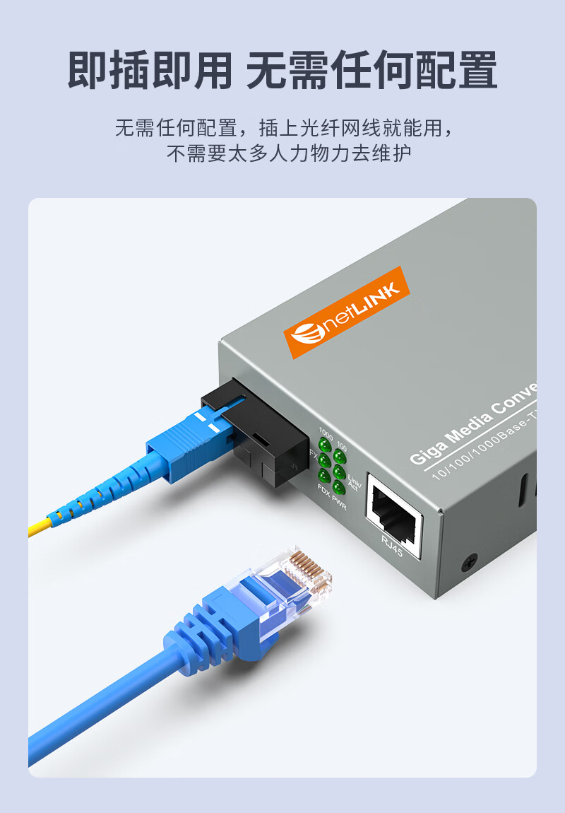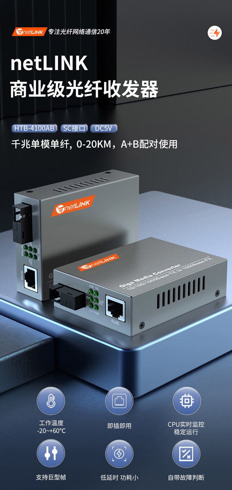 netLINK HTB-4100AB 光纤收发器 千兆单模单纤光电转换器20km 0-20公里 DC5V 一对