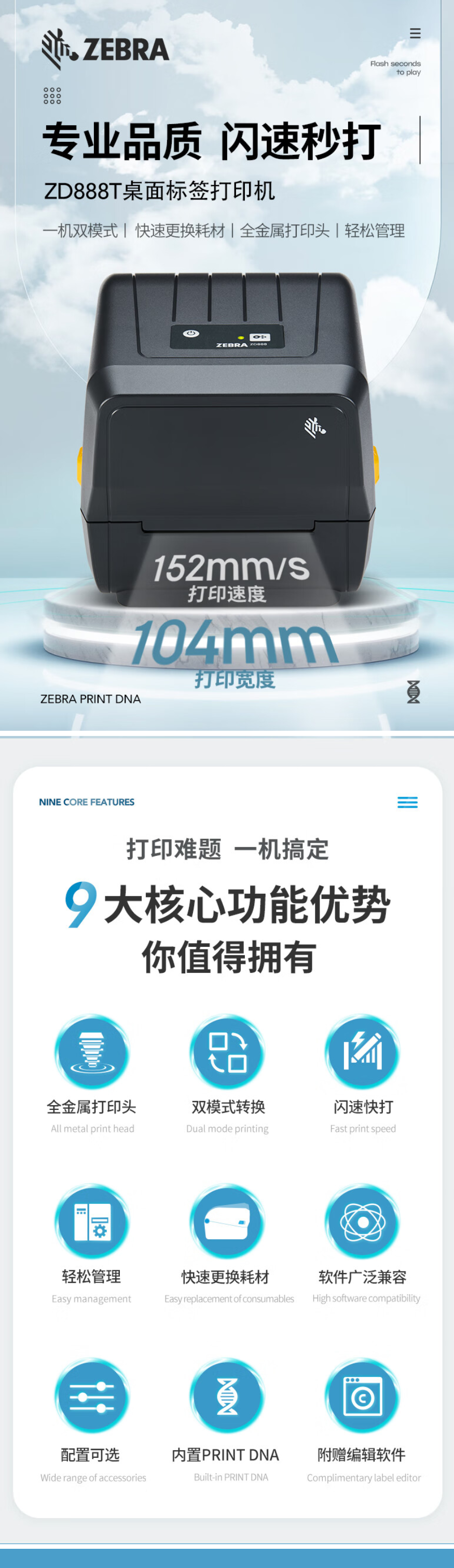 斑马 桌面标签热敏/热转印打印机 ZD888T 网口款