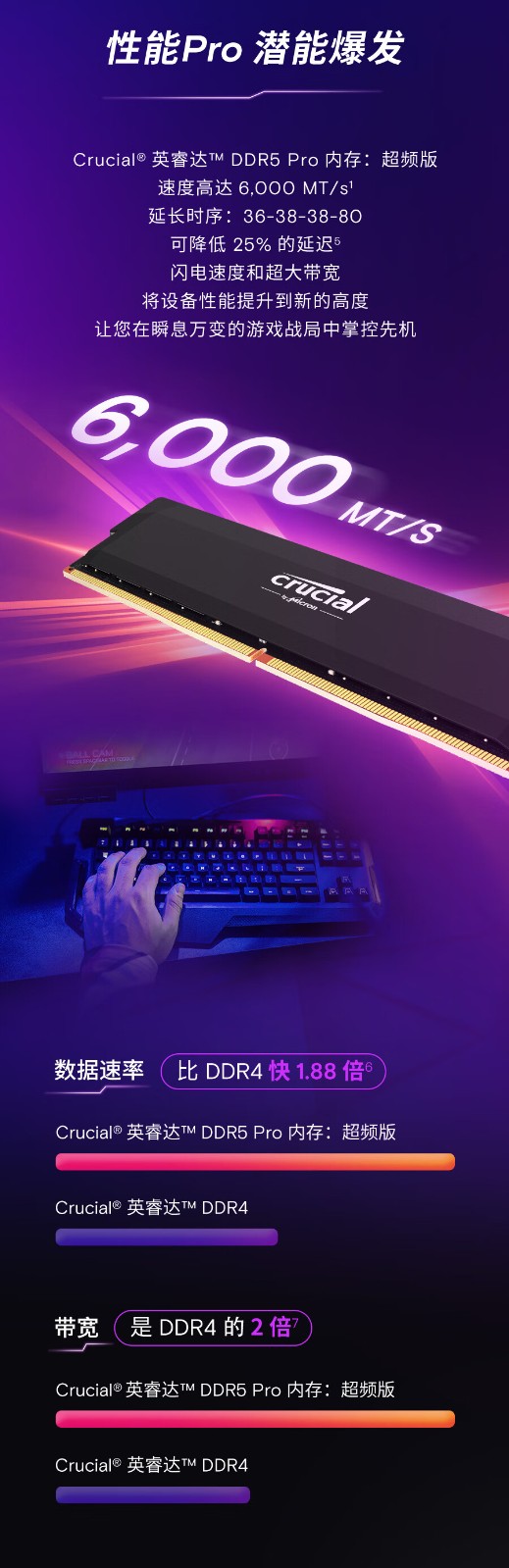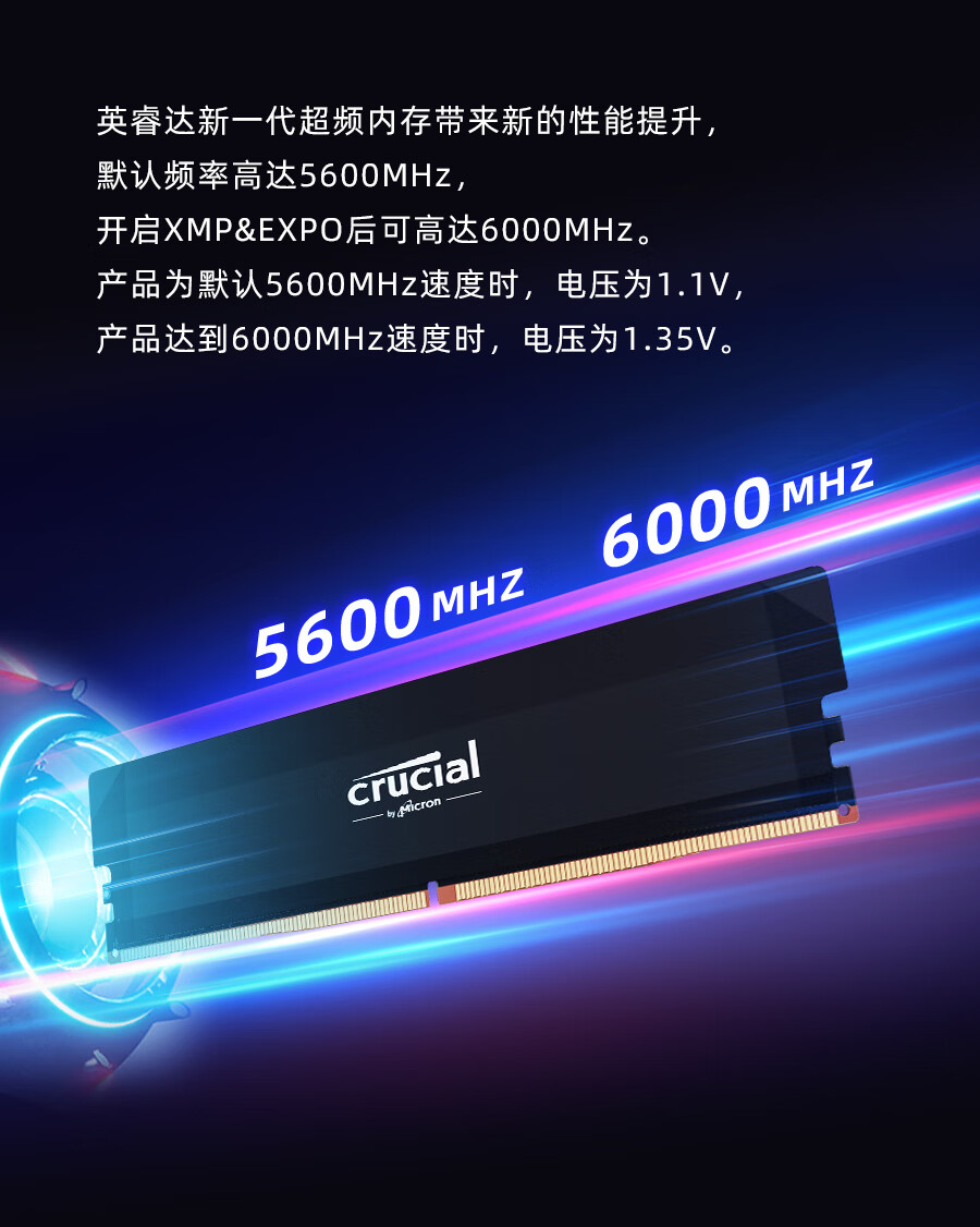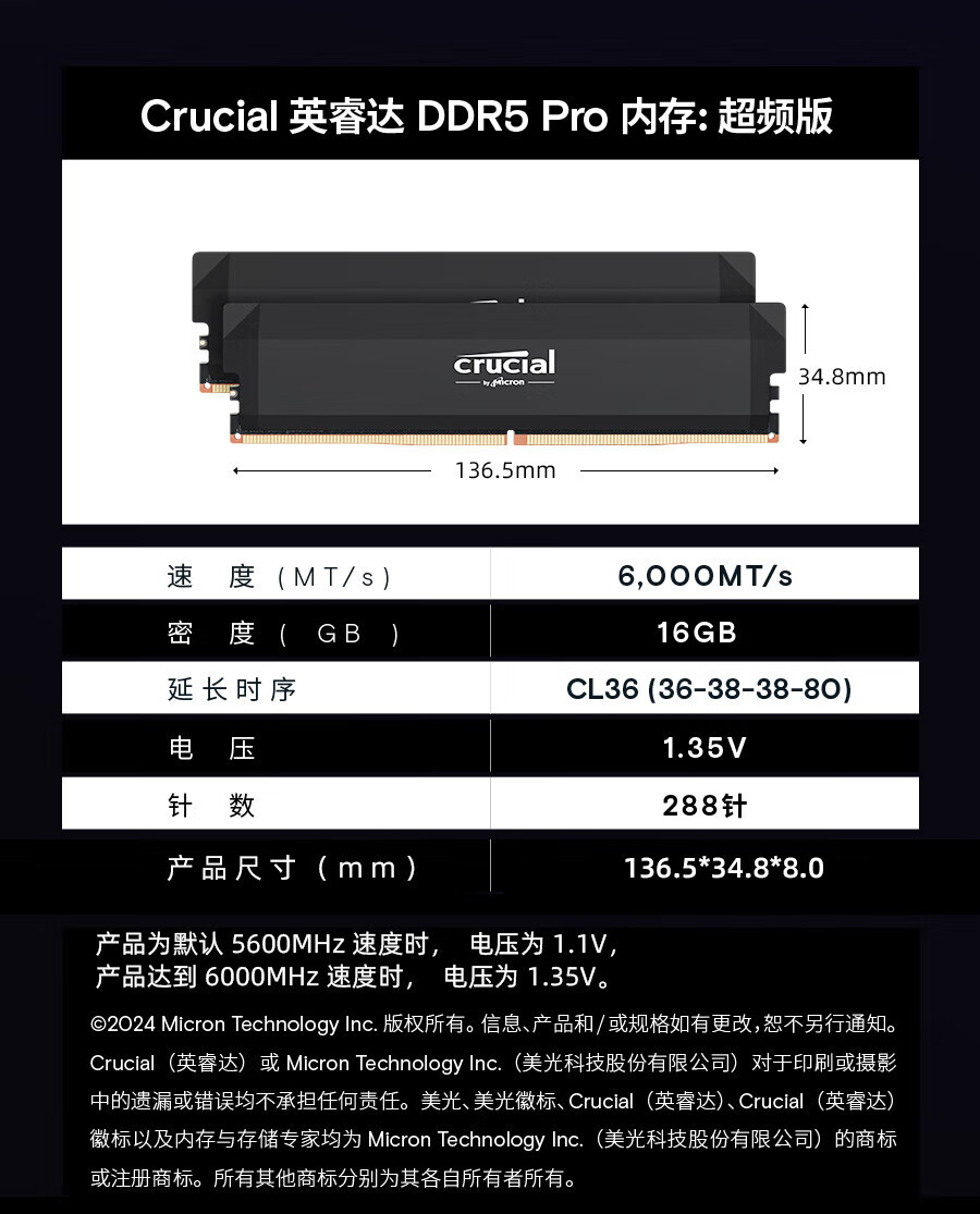 英睿达内存条 美光32GB(16GB×2条/组)DDR5 6000频率