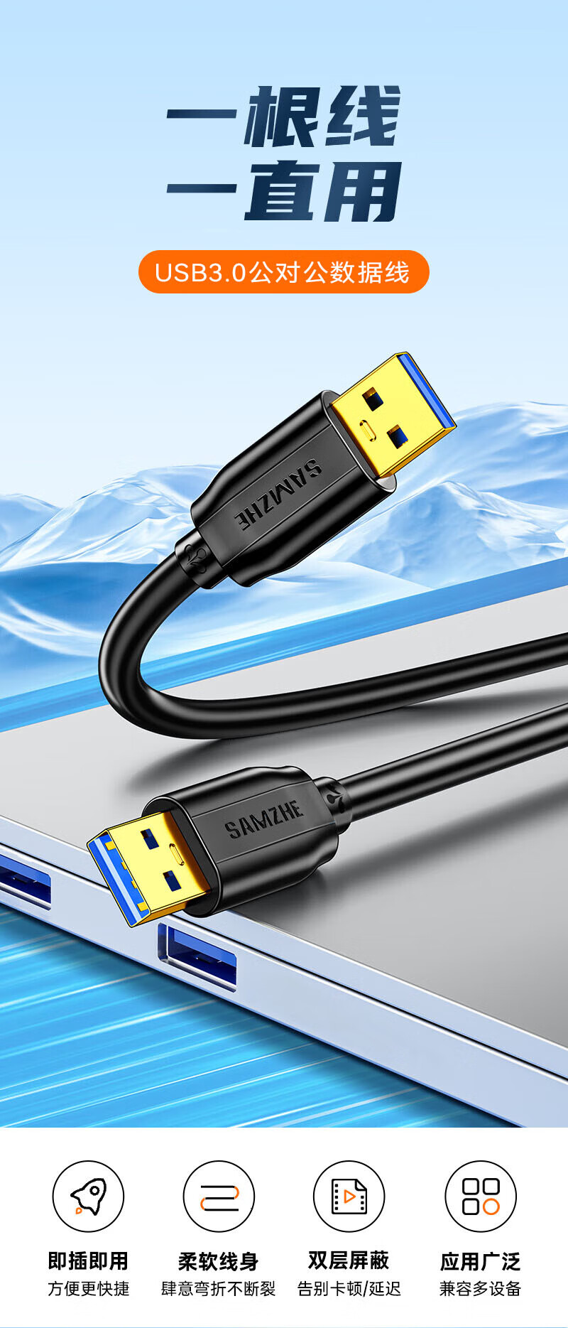 山泽 usb3.0公对公数据线 1米 TAM-10