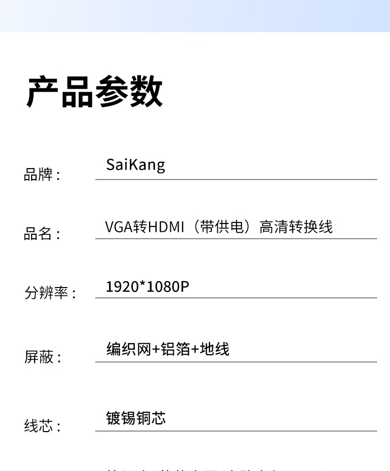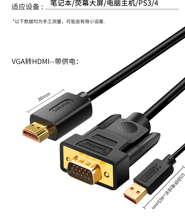 您的当前位置:首页>日用商品>电脑/网络设备及配件>其他配件>saikang>saikang VGA转HDMI转换线器带供电 1.5米