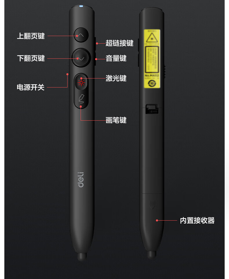 您的当前位置:首页>办公消耗用品及类似物品>文教用品>教具>得力>得力 激光翻页笔 绿光深灰 MA113G