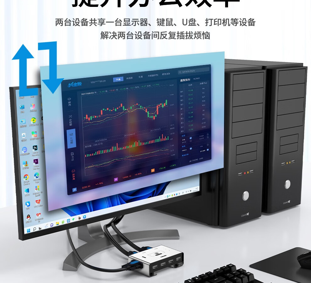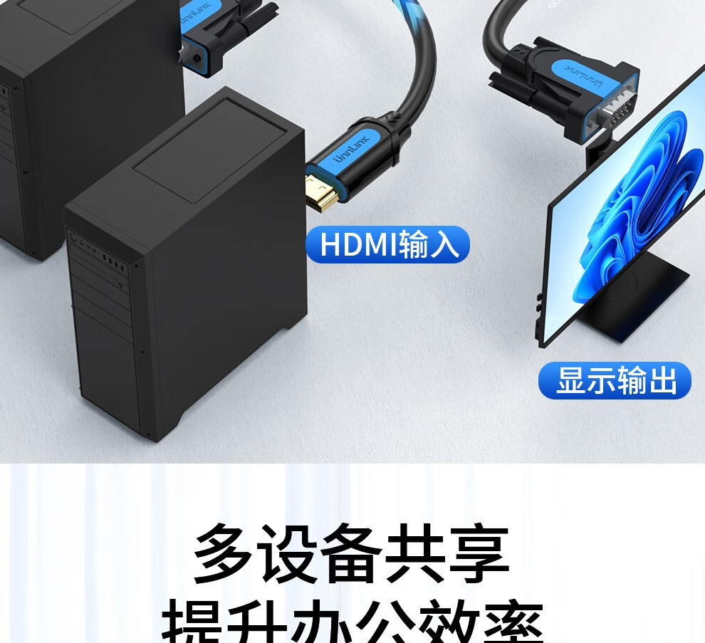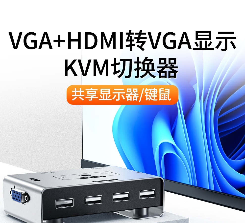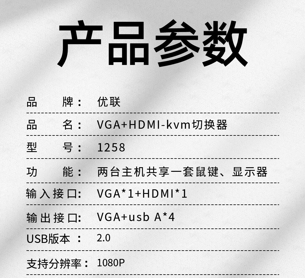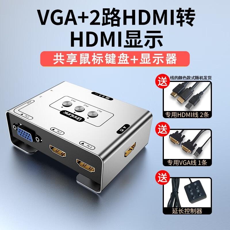 优联 KVM切换器【HDMI*2+VGA转HDMI】三进一出/附线材 1258