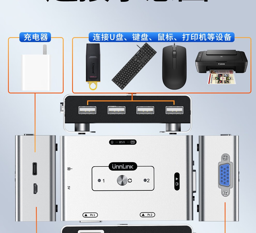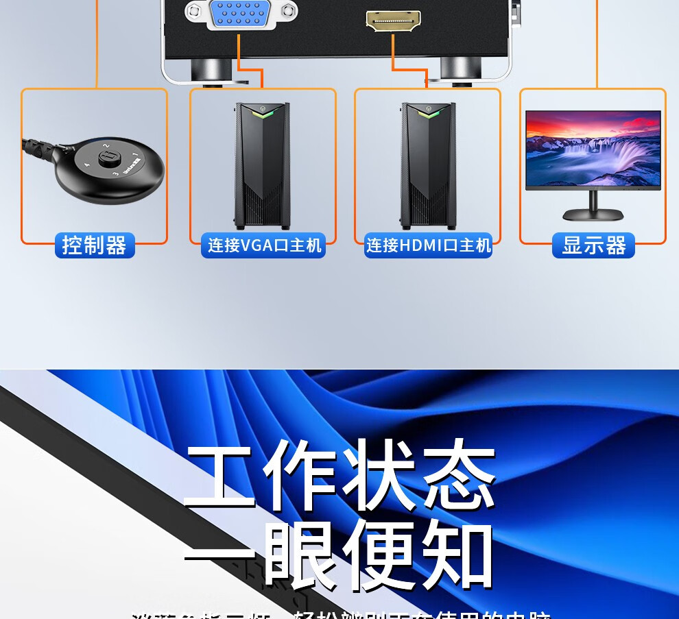 您的当前位置:首页>日用商品>电脑/网络设备及配件>其他配件>优联>优联 KVM切换器【HDMI*2+VGA转HDMI】三进一出/附线材 1258