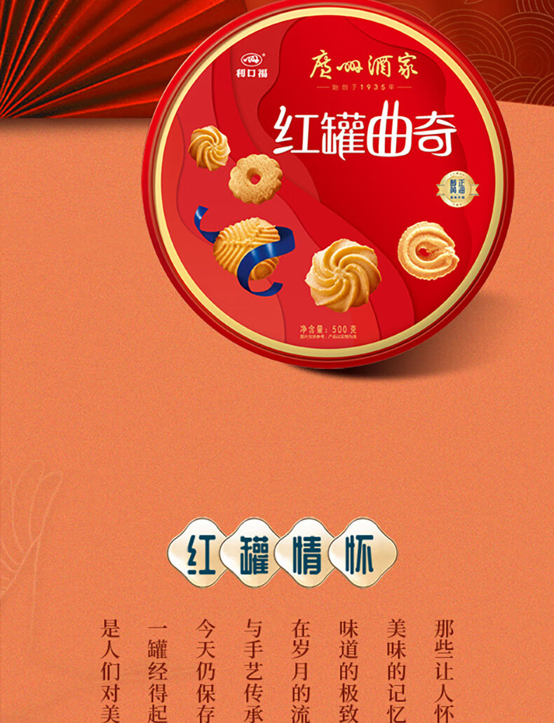 广州酒家利口福 红罐曲奇饼干 500g/罐