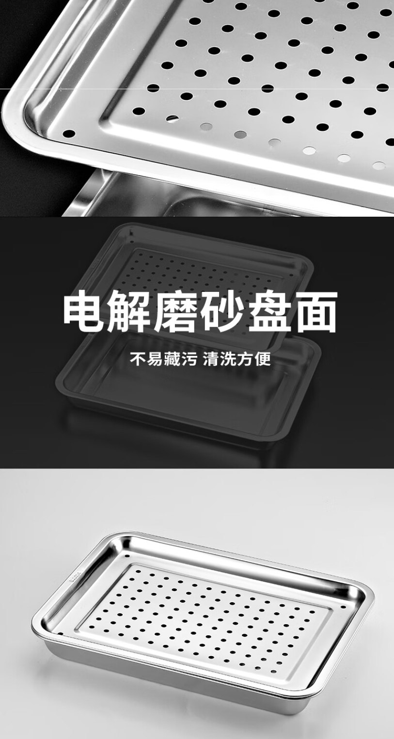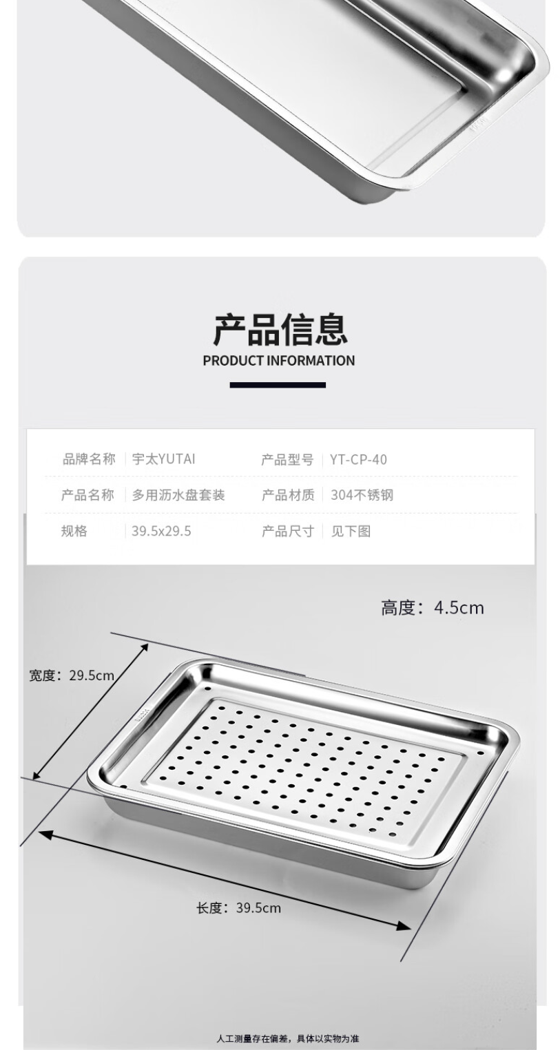 宇太(YUTAI)304不锈钢方盘滤水沥油茶盘饺子盘带孔盘子茶水盘 39.5cm YT-CP-40