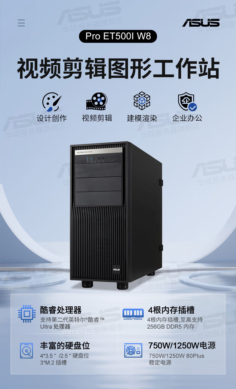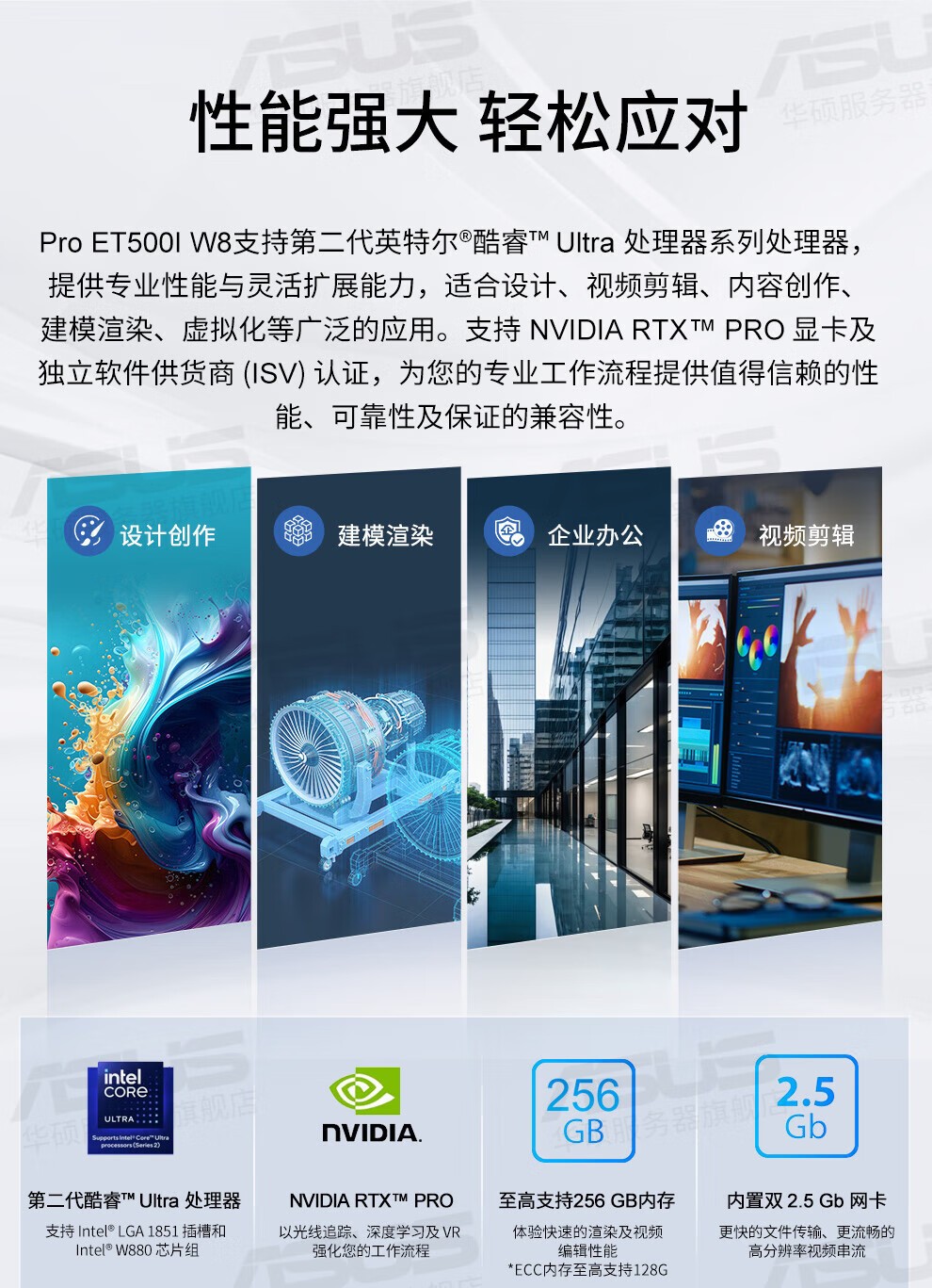 华硕 ET500I W8工作站-Ultra7 265K/64G DDR5内存/2TB固态盘/2块 RTX5060 Ti显卡