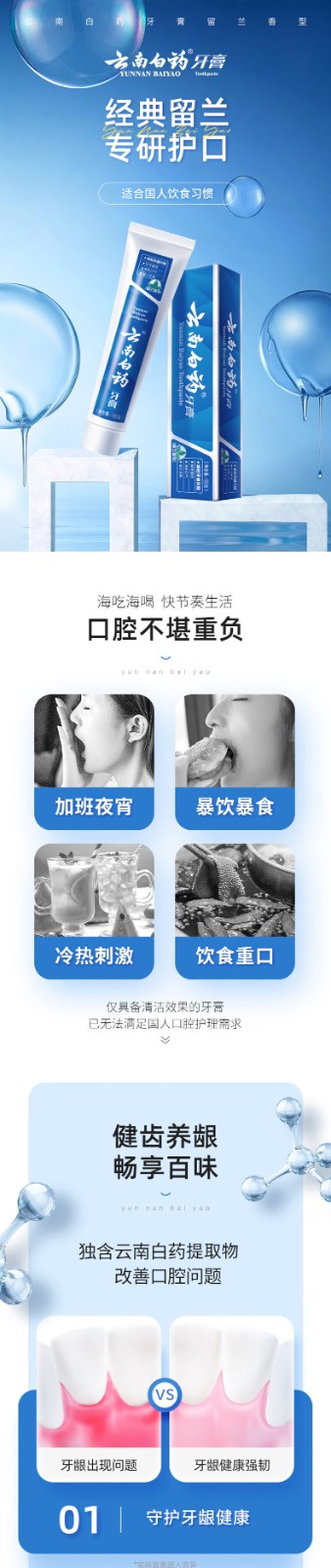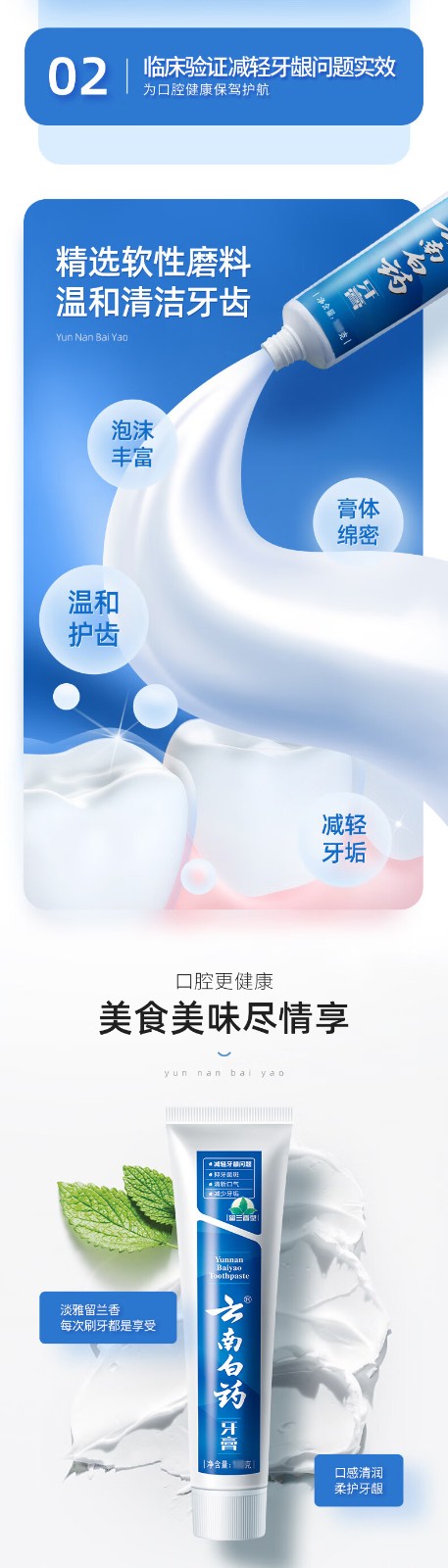 云南白药经典系列牙膏 健齿护龈改善牙龈问题 清新口气留兰香型牙膏180g