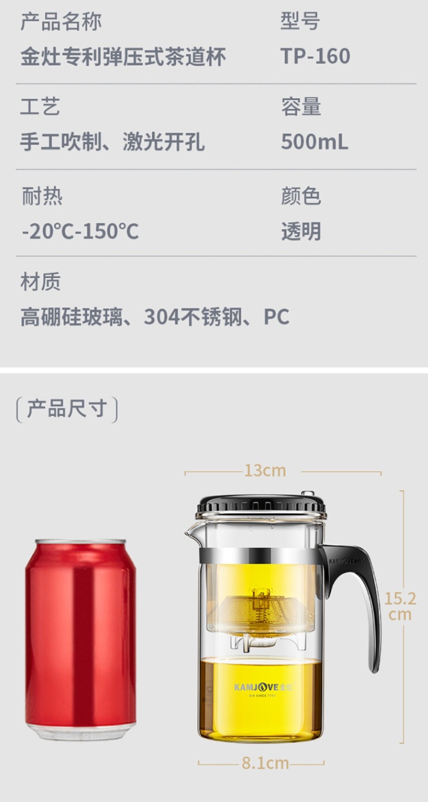 您的当前位置:首页>其它货物>定制类>其它物品>金灶> 金灶 飘逸杯 TP-160【500mL】