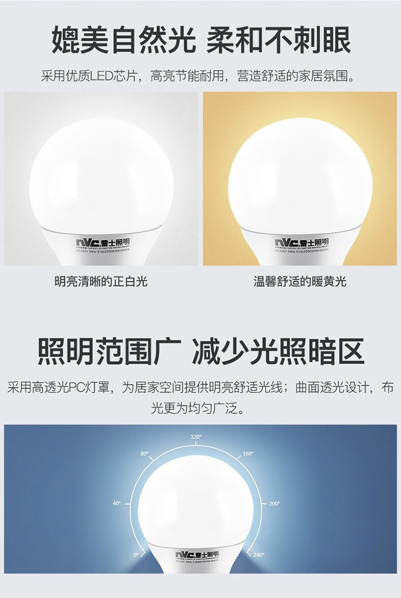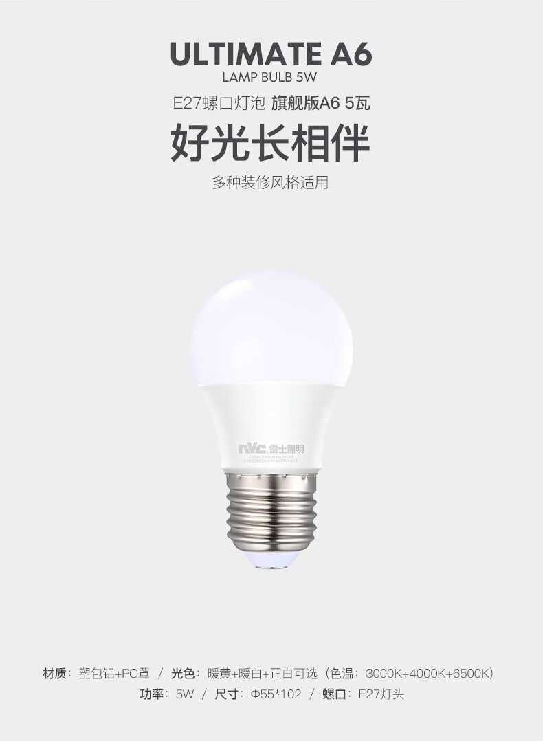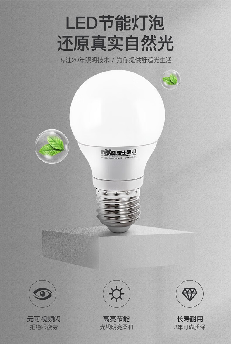 雷士照明节能LED灯泡E27螺口 5W 6500K白色