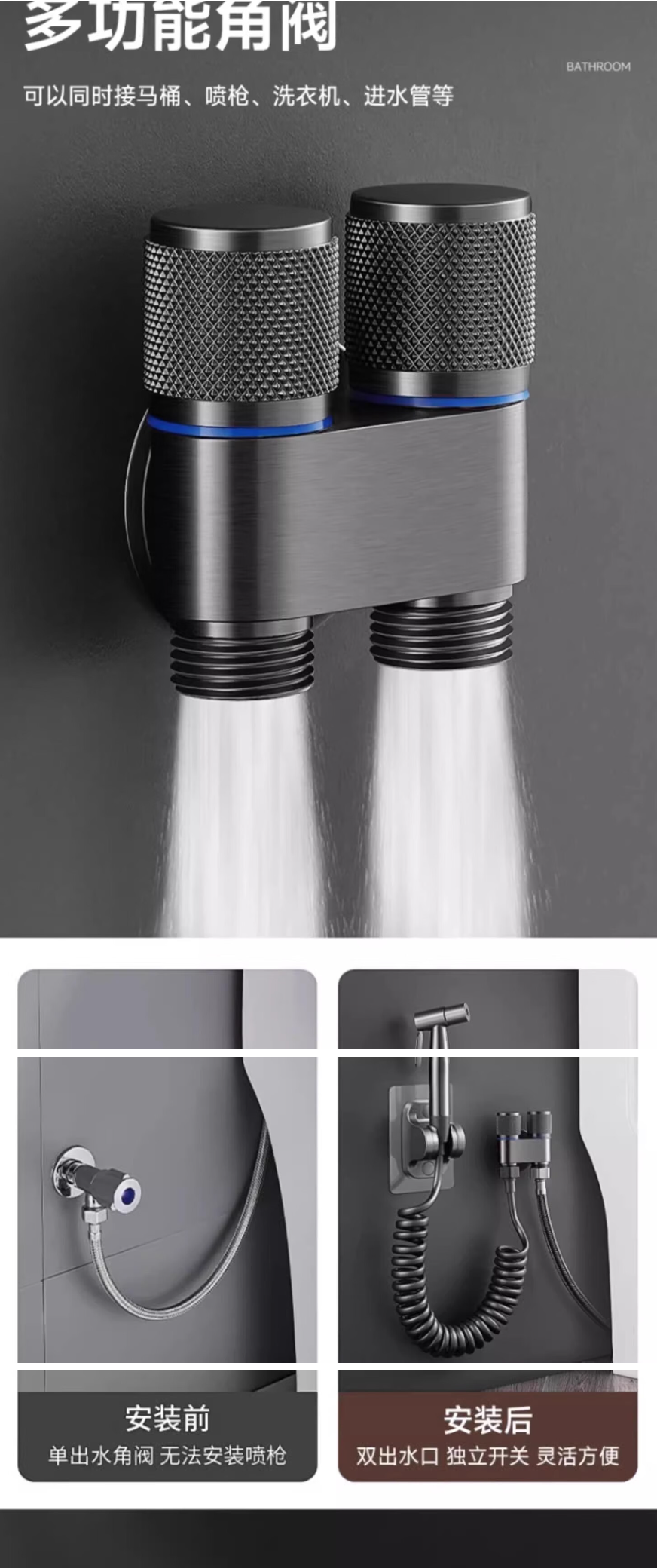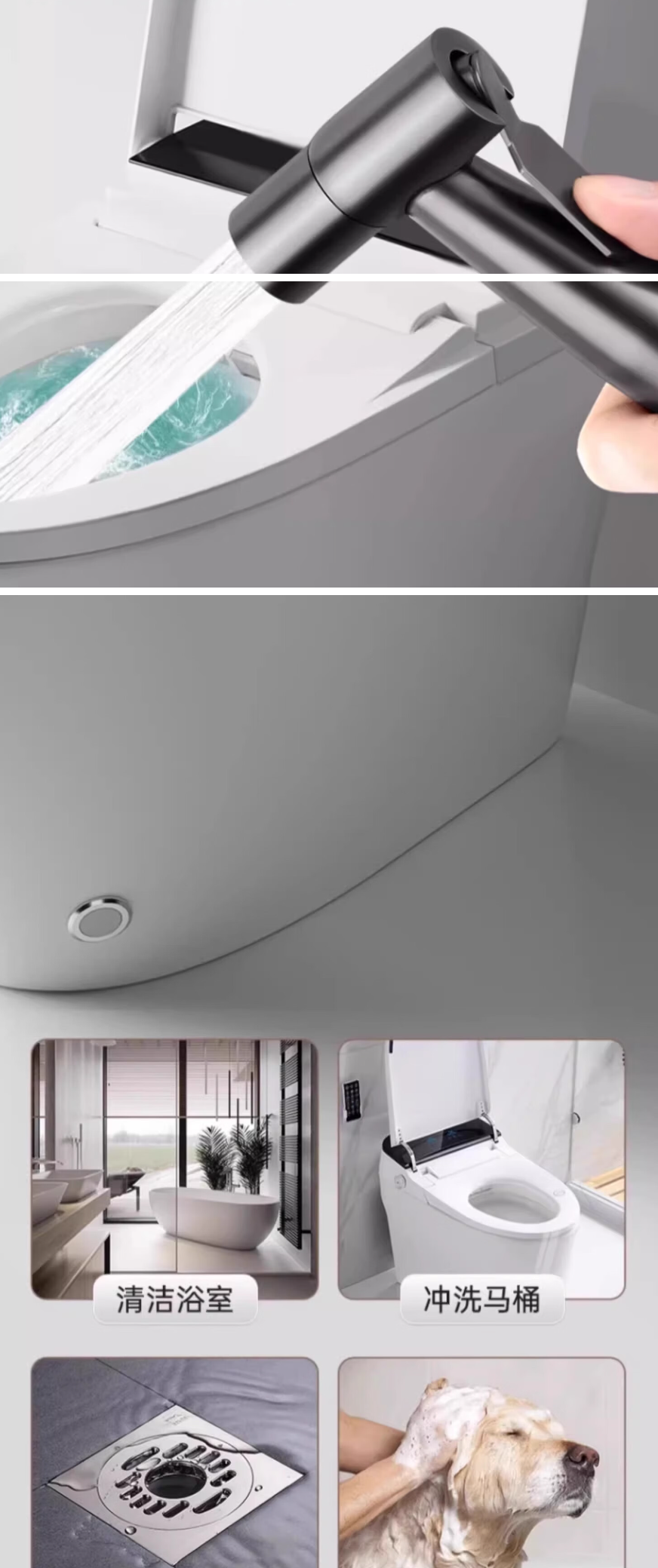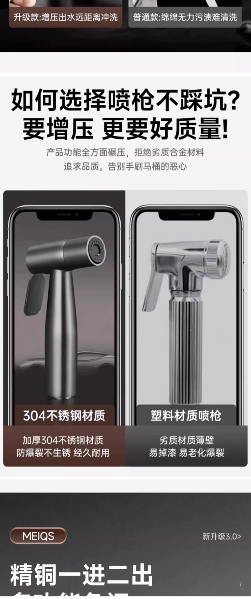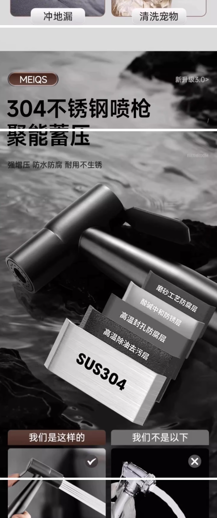马桶伴侣喷枪冲洗 高级灰不锈钢喷枪+3m管+免钉支架