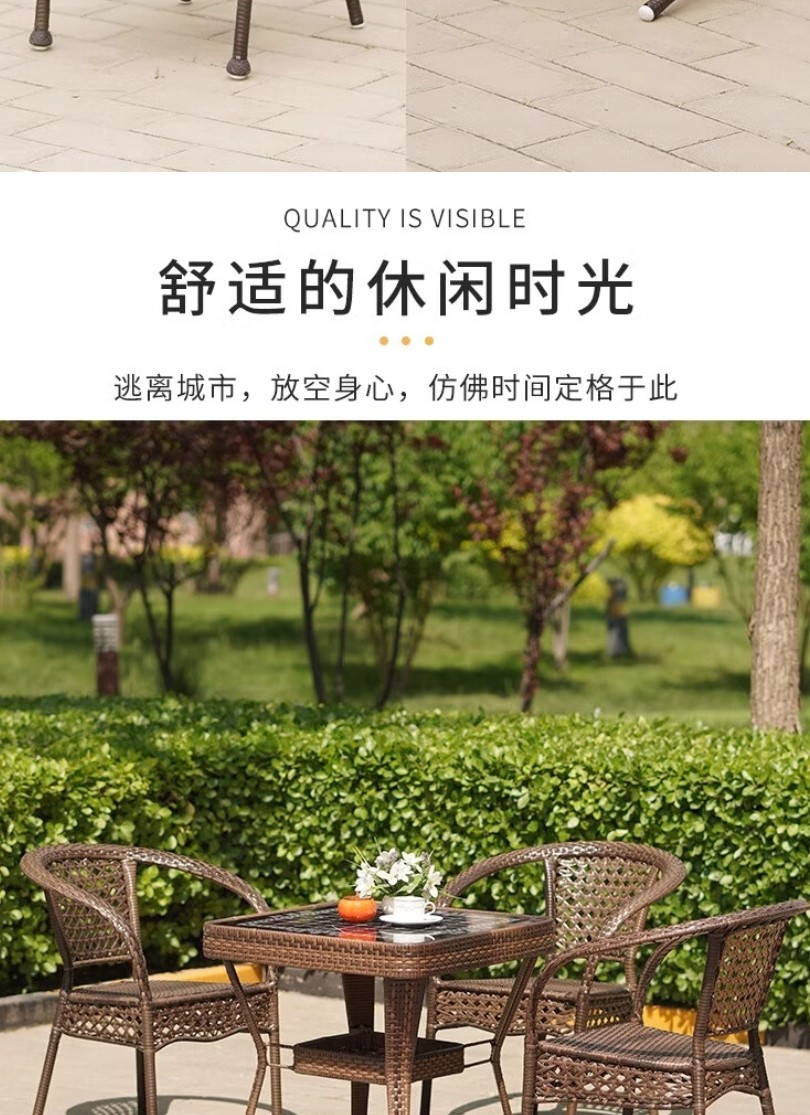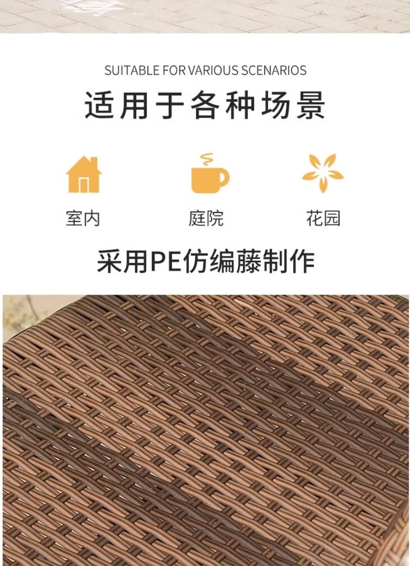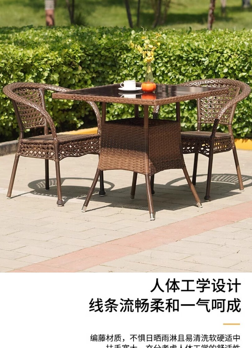 唐辑 阳台休闲桌椅 65方桌+2椅送坐垫