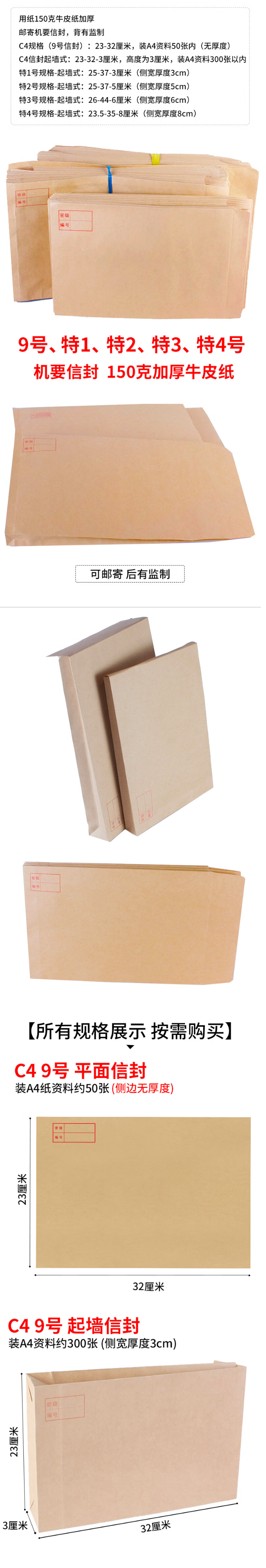 于字简 牛皮纸机要信封 23*32cm 50个 6509