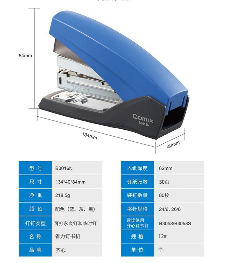 您的当前位置:首页>办公消耗用品及类似物品>文教用品>文具>齐心>齐心 省力订书机 B3016N
