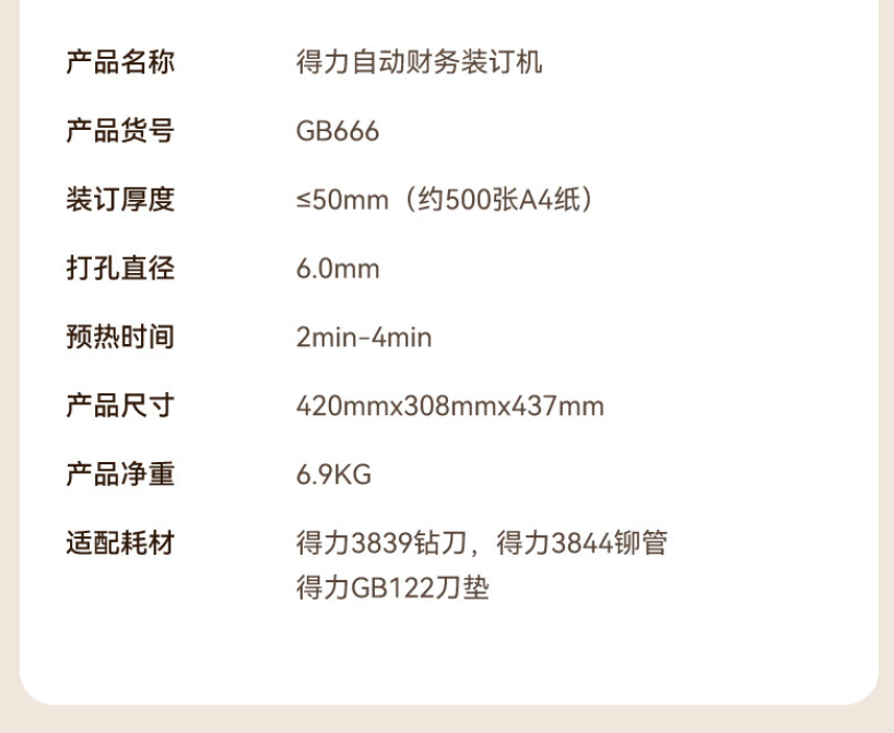 得力 500页自动凭证装订机 GB666