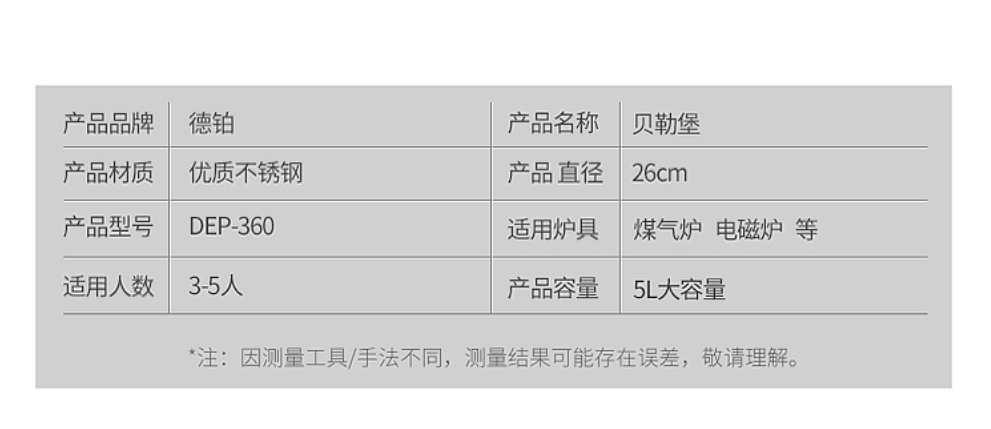 德铂(Debo) 贝勒堡汤锅 DEP-360