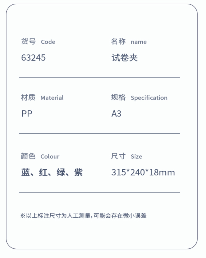 得力 A3备考试卷夹文件夹 63245 混色