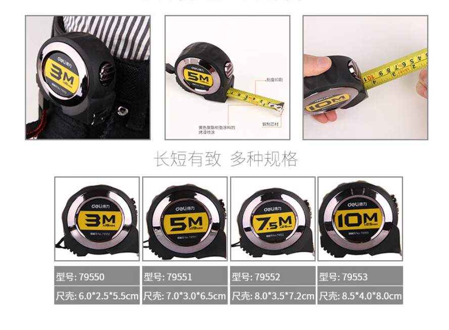 得力 10m全包胶自锁钢卷尺 79553