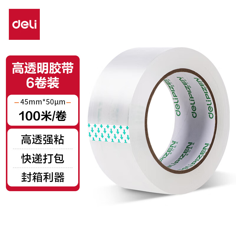 得力(deli) 胶带 45mm*100m*50um 6卷/筒 33193