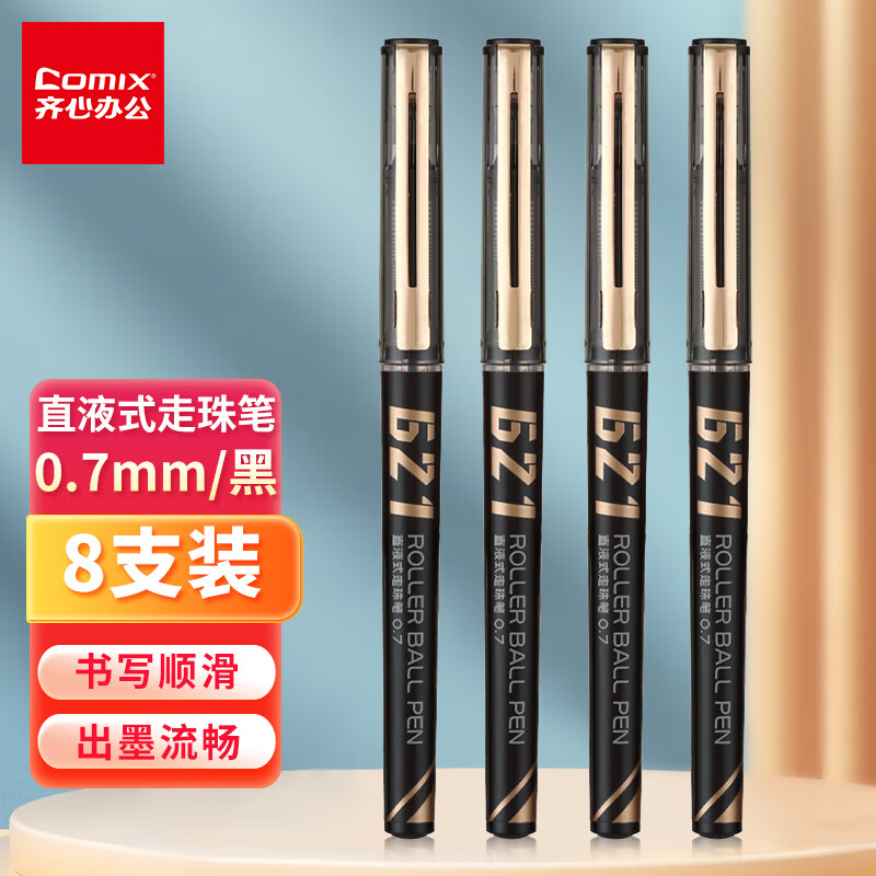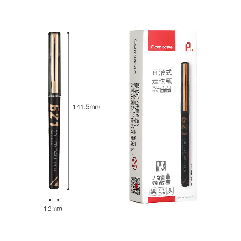 齐心 商务直液式走珠笔 黑色 8支装 RP621