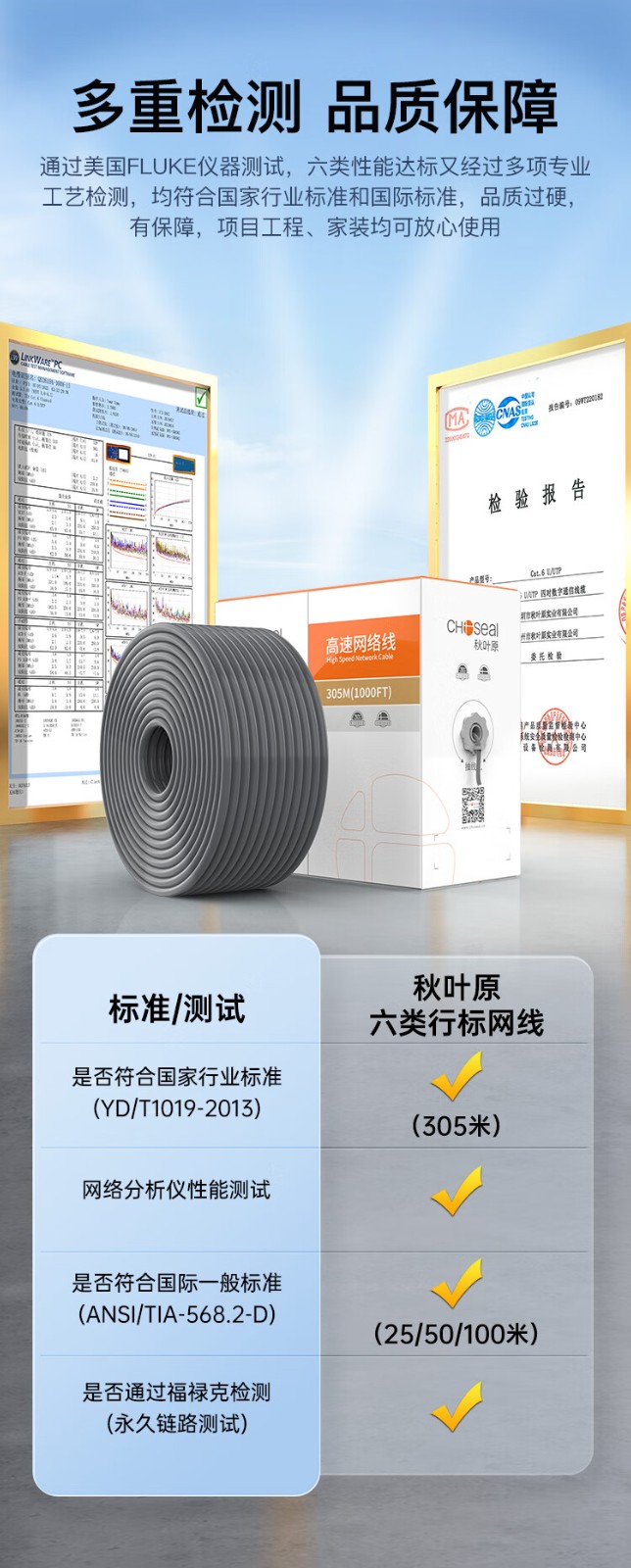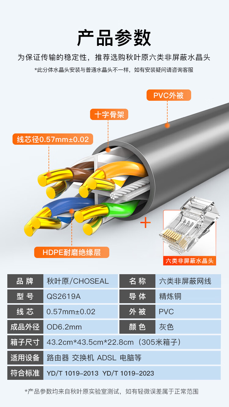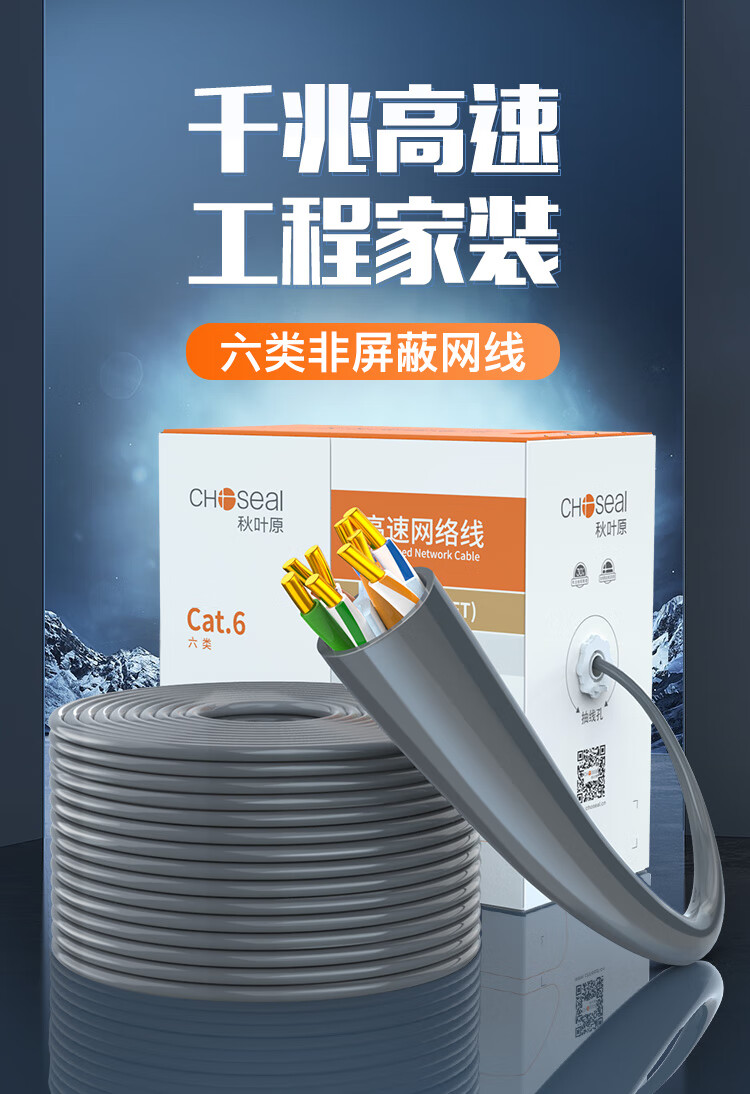 秋叶原(CHOSEAL)原装六类非屏蔽双绞线305米/1箱