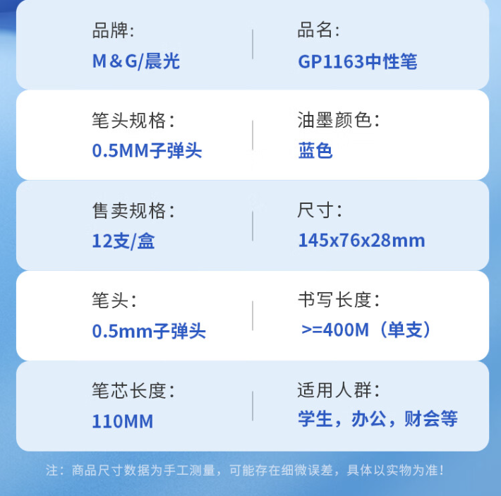 晨光 按动中性笔 12支/盒 蓝色 GP1163