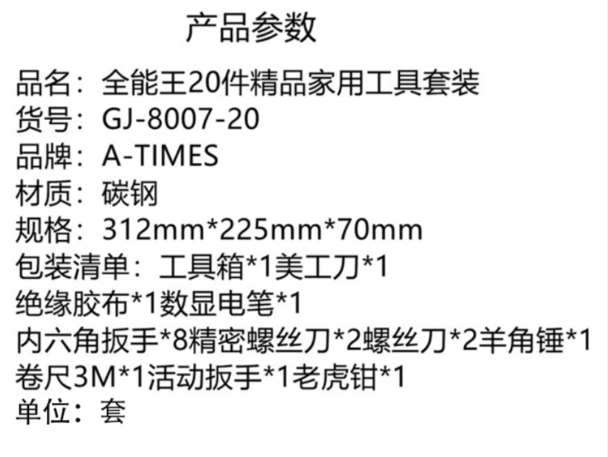 A-TIMES 全能王20件精品家用工具套装 GJ-8007-20