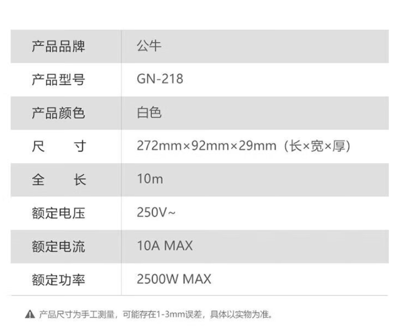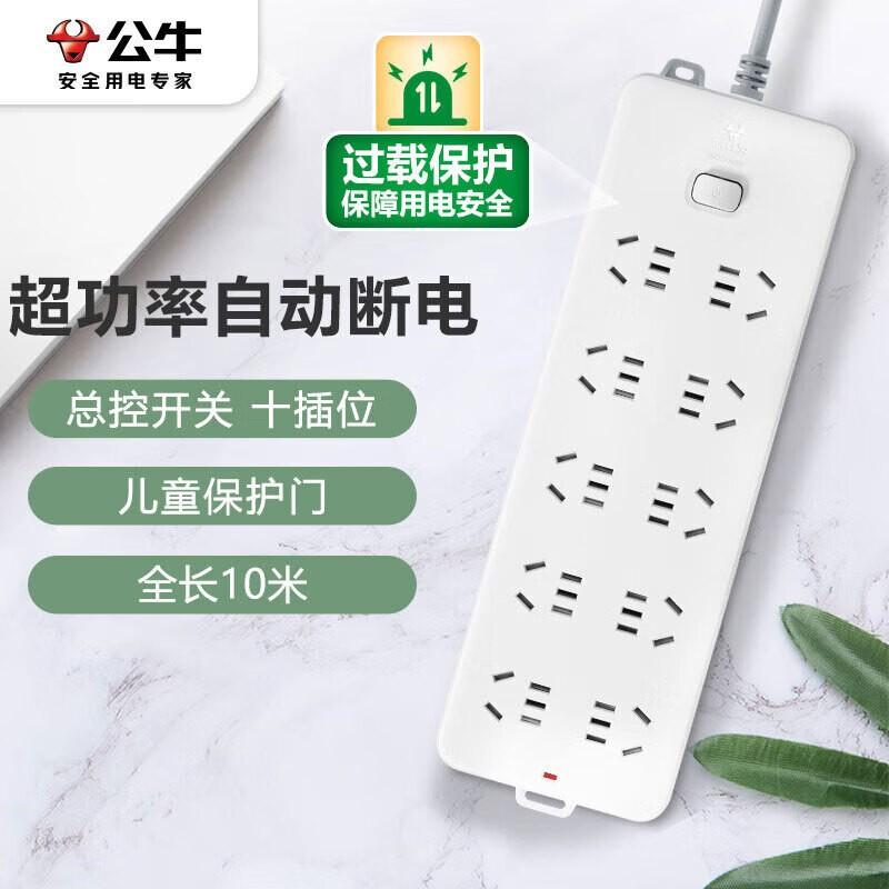 公牛 插排10插位总控开关全长10米 GN-218