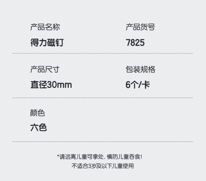 您的当前位置:首页>办公消耗用品及类似物品>文教用品>文具>得力>得力 磁钉 NO.7825